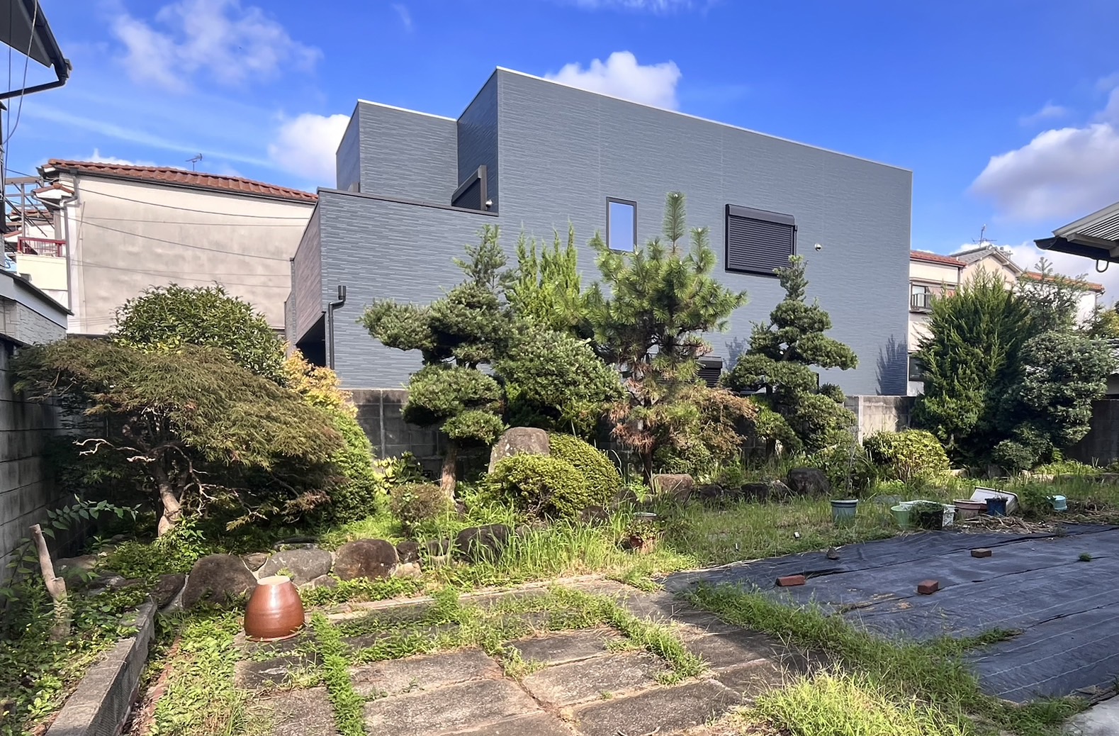 山梨県 中央市 にて、日当たりを遮っていた庭木の剪定・除草作業を行いました!